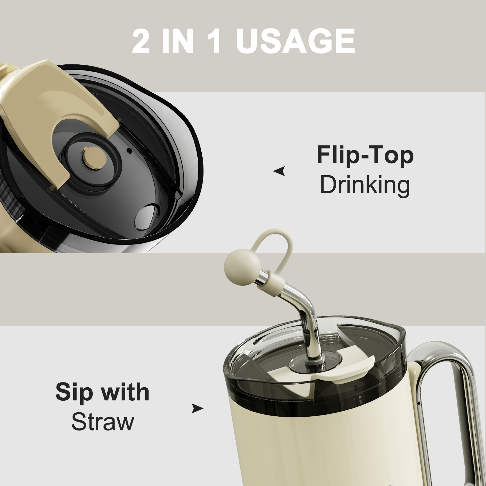 🍵Een rietje opening ontworpen To weerstaan spatten met een afdichting die het herbruikbare rietje op zijn plaats houdt, een drinkopening en een volledig afdekkende bovenkant voor extra lekbestendigheid. We hebben ook een ergonomische, comfortabele handgreep toegevoegd, zodat u uw ijskoude water gemakkelijk mee kunt nemen naar uw werk, vergaderingen, de sportschool of uitstapjes buiten de stad.
