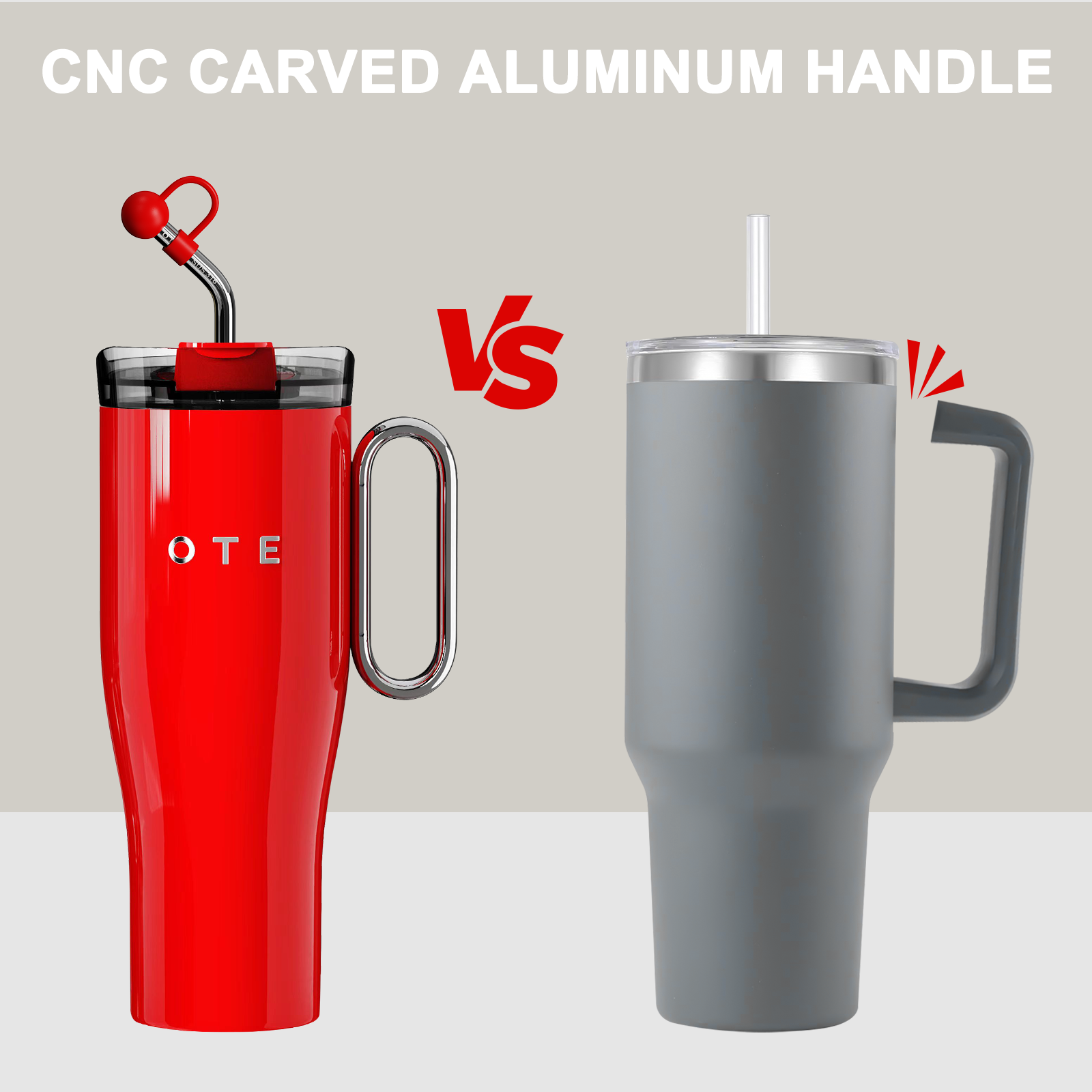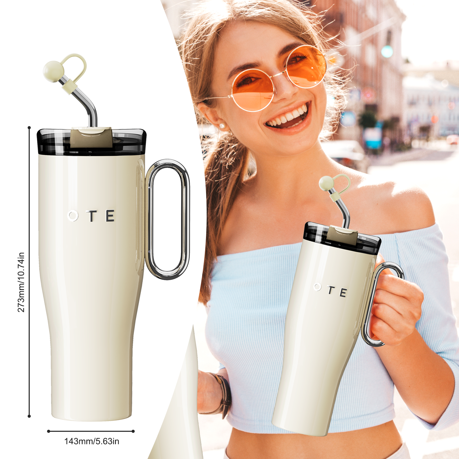 OTE 1.2 L (40 oz) Reisbeker met handvat, dubbelwandige stalen vacuüm geïsoleerde mok en rietje, BPA-vrij, draagbare autobeker, thermische mok, koffiekopje voor warme en koude dranken